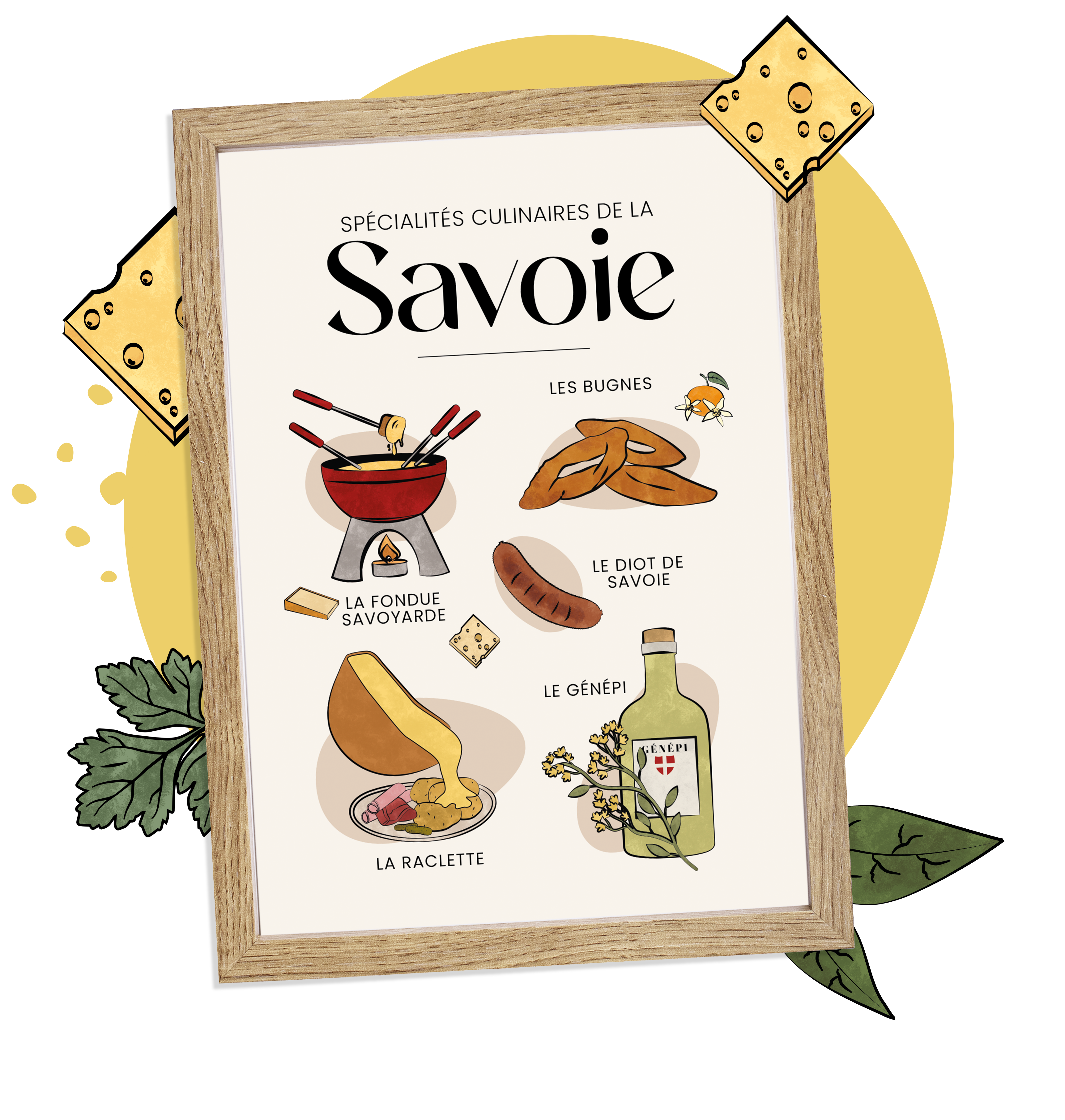 J’ai eu envie de mettre à l’honneur les spécialités culinaires françaises à travers une série d’affiches illustrées, colorées et gourmandes.