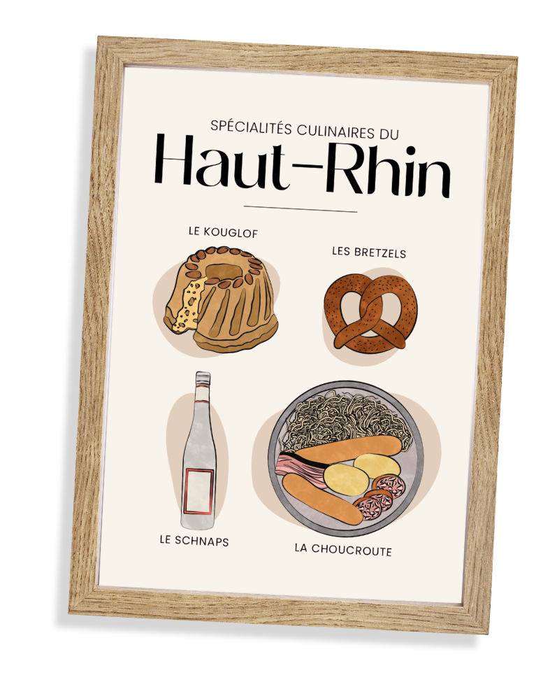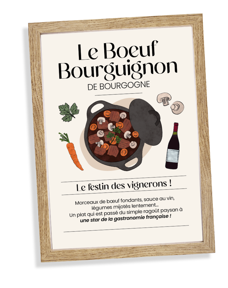 Chaque création illustre une région de France et sa richesse gastronomique : fromages, desserts, plats traditionnels ou produits emblématiques. Les affiches deviennent ainsi de véritables voyages visuels, entre art et terroir.