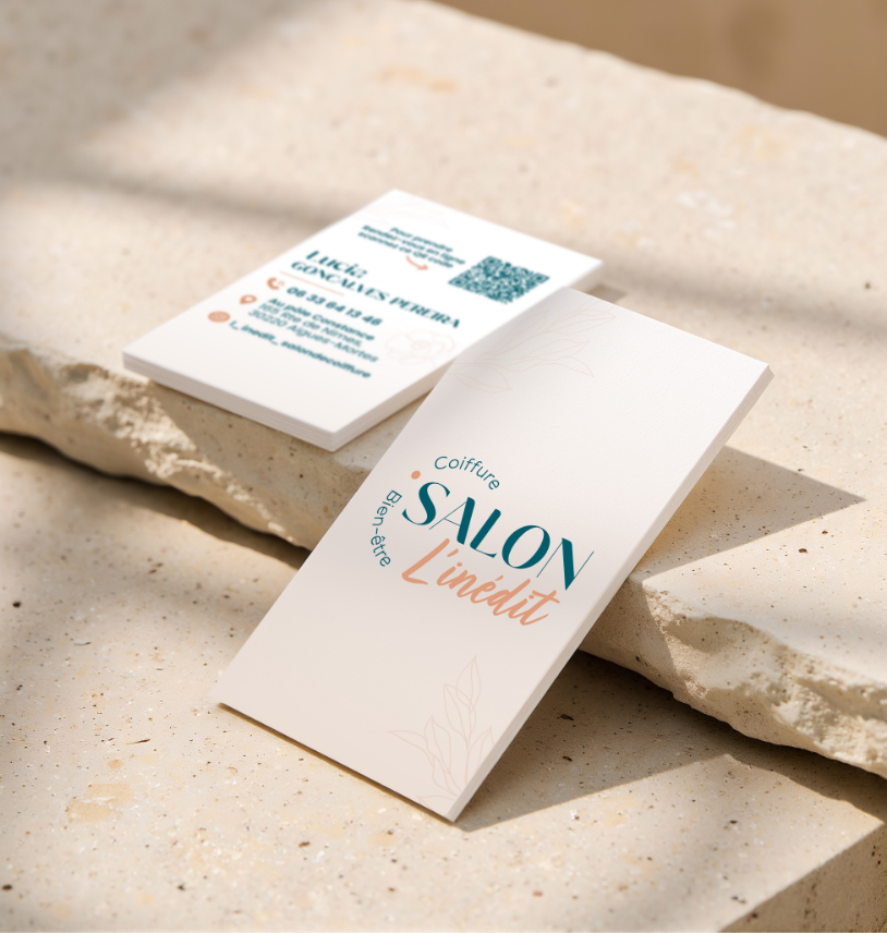 J’ai eu le plaisir d’accompagner Lucia dans la création de l’identité visuelle de son salon, L’Inédit. J’ai travaillé sur le logo, les cartes de visite, les flyers, la brochure des tarifs et l’enseigne, pour que tous les supports soient cohérents et reflètent l’esprit du salon. L’objectif était de créer une identité visuelle harmonieuse et professionnelle, qui donne une première impression forte et positive à ses clients.